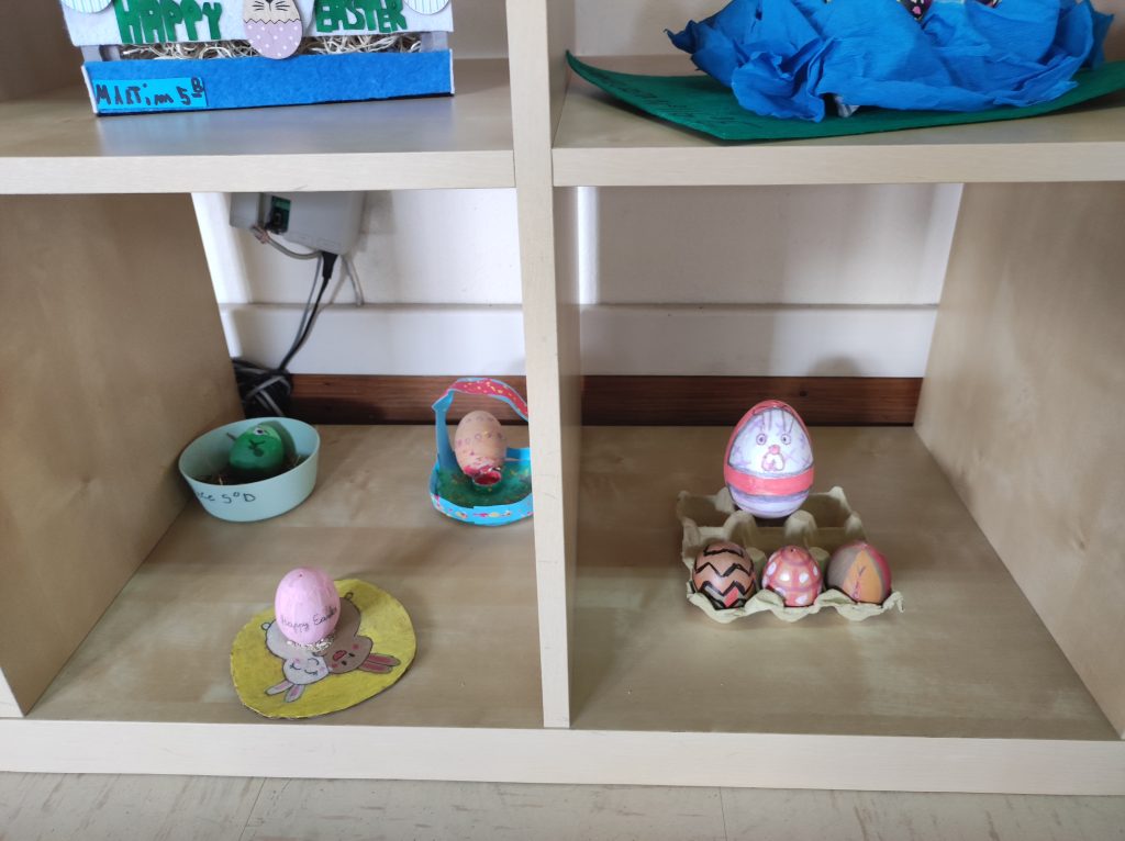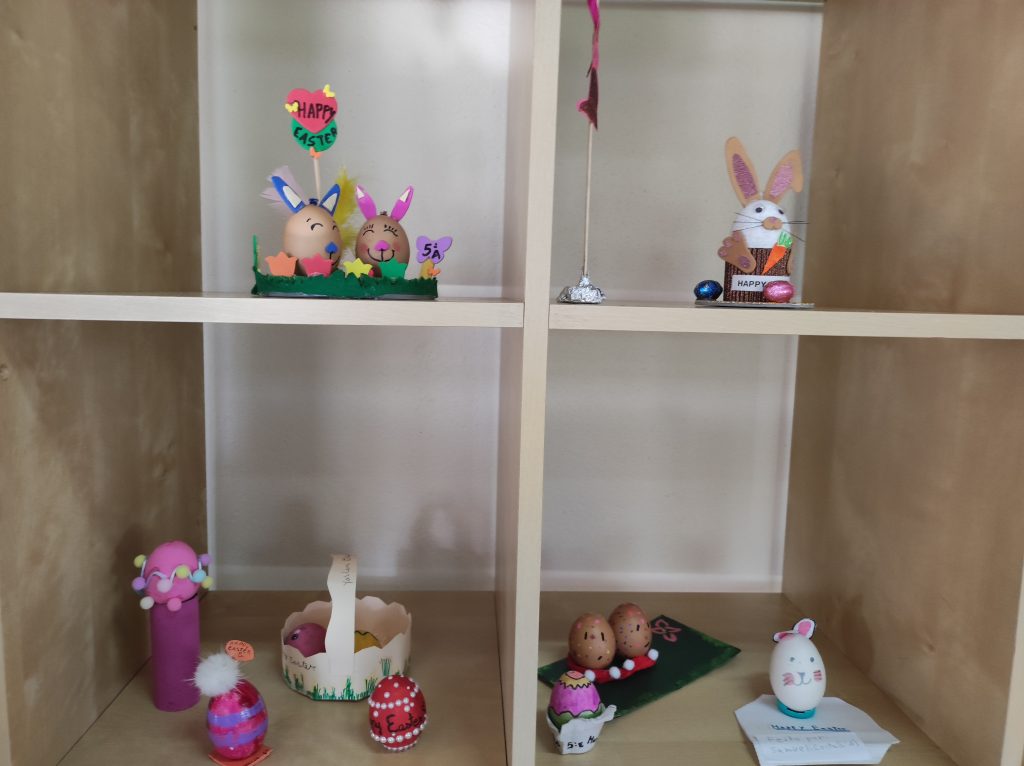 Para assinalar a época pascal de forma lúdica e criativa, o Grupo 220, em colaboração com a professora Eulália Moreno, responsável pela decoração do espaço, promoveu uma exposição de Easter Eggs decorados pelos alunos do 2.º Ciclo.